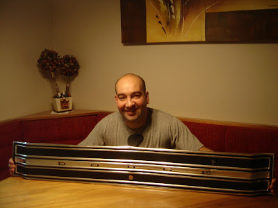 Após uma "longa" espera de 34 dias! Agora a tarde, para ser mais exato às 15:40. Entra em nossa loja, meu amigo Vitor Plentz abraçado com o Tail Panel do GTS 68! Acabo de chamar o Vitor de amigo. Mas para dizer a verdade, praticamente mal nos conhecemos! Mas como não chamar um cara desses de amigo??? Um cara que prontamente se propos a ajudar, mesmo não sabendo ao certo da "roubada" em que estava se metendo!!! hehehe... Temos muito pouco contato, mas o Vitor é uma daquelas poucas pessoas que quando a gente conhece e começa a conversar, temos a nítida impressão de que a conhecemos a anos!!! Caramba... nós não conseguiremos imaginar a função que deve ter sido colocar esse friso de 132 cm dentro de uma mala! Isso mesmo 1m32cm! O Tail Panel veio dentro de uma mala, e o inacreditável vem agora: ele veio juntamente com a bike do Vitor que foi correr duas etapas do Campeonato Americado de BMX!!! Realmente um feito impressionante!!!